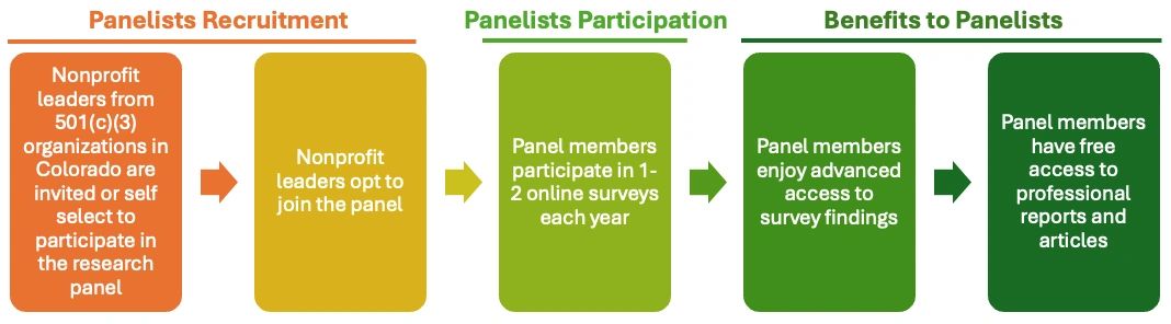 Executive leaders (e.g., Executive Director, CEO, or President) of 501(c)(3) nonprofit organizations in Colorado are invited or can sign up to participate in the Panel on behalf of their organizations.